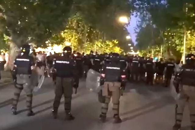 Oko 21.30, oni su okupljene građane gađali pirotehničkim sredstvima, jajima, kamenicama, flašama i drugim predmetima. Prema pisanju portala N1, do organizovanog napada je došlo u istom trenutku kao u Vrbasu, gde policija takođe razdvaja građane i pristalice SNS-a.
