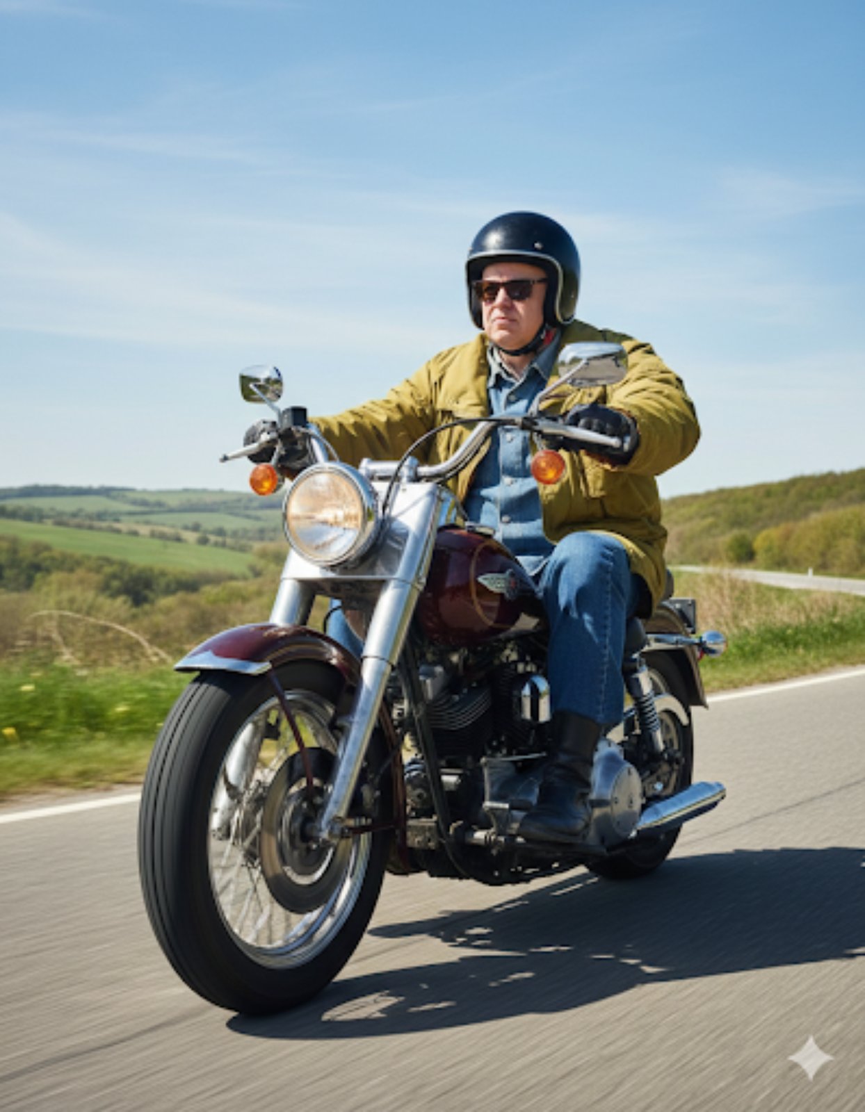 Brat je u dosadi uspeo da me slika telefonom, u jednom od pustih čekanja – AI umontira da vozim motor. Dobra satira, i ne treba se ljutiti. Do kraja života motor neću moći da vozim.