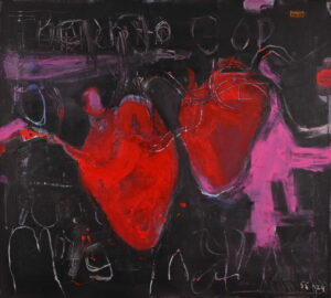 Gde bi se potraga za smislom, za svojom autentičnom nutrinom, bolje isticala od brutalističkog betona galerije Neon, gde su do 23. aprila izložene slike vizuelne umetnice Laure Sagmeister, u okviru postavke True (Istina)? Siva boja galerijskih zidova pravi efektan kontrast sa onim što Laura pronalazi u sebi, a jarko je ili nežno crveno, iako različitih oblika – raspolućenog nara, srca, omeđene muške telesnosti… pa i samog Boga. Dijapazon crvenog stavlja akcenat na