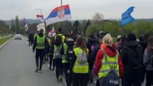 Velika grupa studenata je danas pešačila od Gornjeg Milanovca do Takova, gde su obeležili godišnjicu Drugog srpskog ustanka.