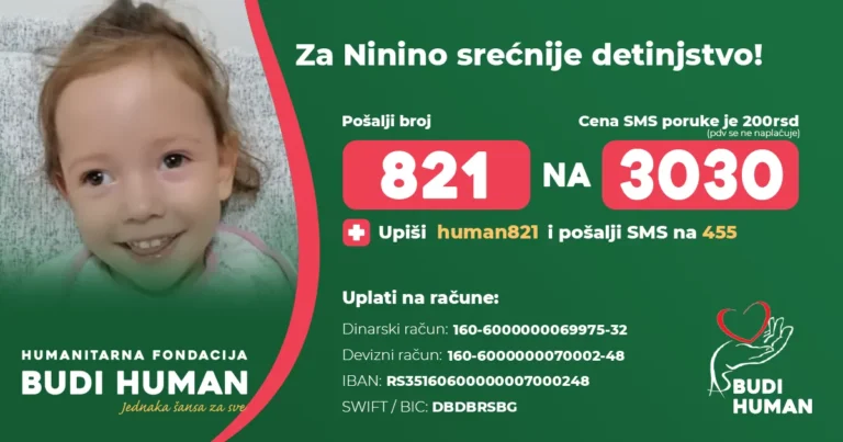 Humanitarna fondacija Budi human prikuplja novčana sredstva za Ninu Stamenković od devet godina za specijalističke preglede i terapiju.