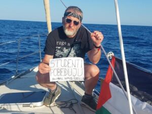 Među stotinama volontera i aktivista na globalnoj flotili Sumud, koja je pre dve nedelje krenula iz luke u Barseloni ka Gazi u pokušaju da probije izraelsku blokadu i prenese humanitarnu pomoć nalazi se i jedan aktivista iz Beograda. Sa Bobom Šundićem smo razgovarali o bezbednosnoj proceni, aktivnostima tokom puta, njegovim motivima da se pridruži flotili i cilju ove akcije.